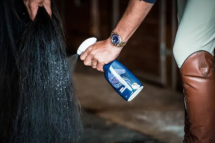 Prevents coat stains through the dust and dirt repelling properties; Every hair strand will be coated with a protective layer to prevent tangling of the mane and tail.